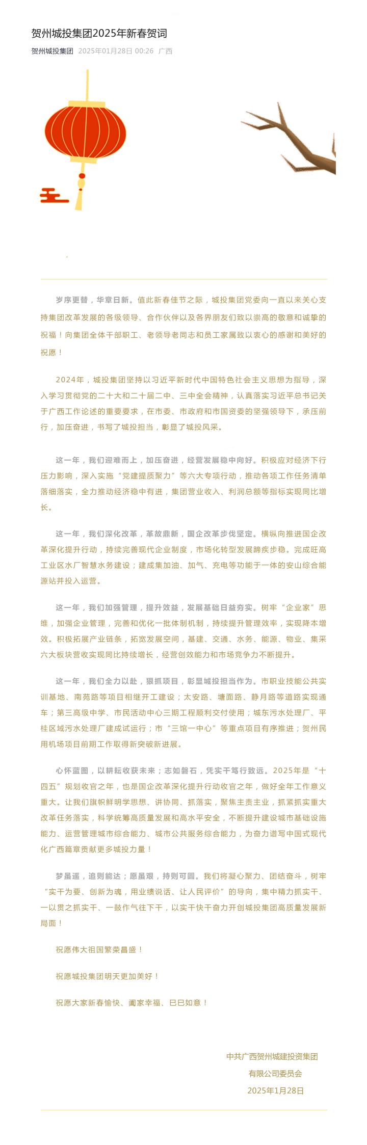 賀州城投集團2025年新春賀詞